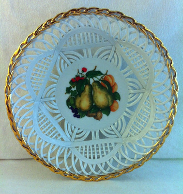 Title (ebay affiliate link): Porfin CLUJ Napoca Romania Lattice Weave Porcelain Basket Open Lace Fruit