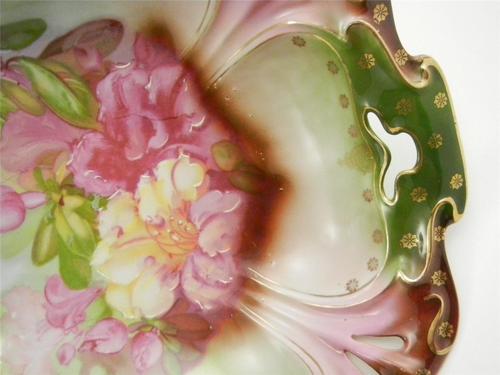 Title (ebay affiliate link): Antique German Porcelain Bowl Pink Yellow Florals Pierced Sides Bavaria