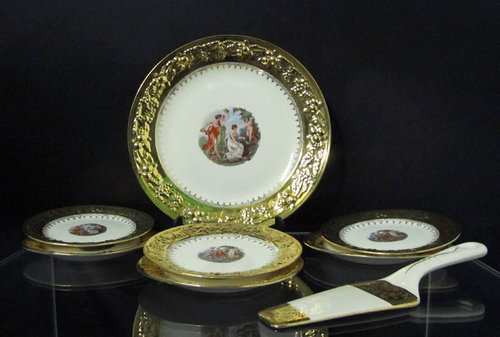 Title (ebay affiliate link): Vintage 22k Gold Gilt Greek Beauty Transfer Desert Cake China 8 Piece Set yqz