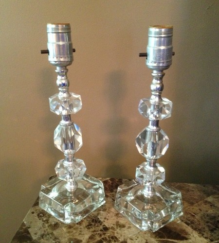 Title (ebay affiliate link): Pair Vintage Cut Crystal/Glass Ornate Silver Trim Electric Table Lamps