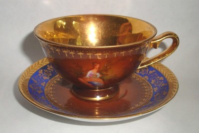 Title (ebay affiliate link): Kunst, Bavaria, Demitasse Cup and Saucer, w Figural Panels & Gold Decoration