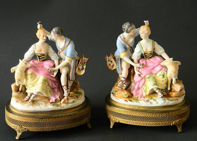 Title (ebay affiliate link): PAIR Antique Hand Painted Romantic Figurines Flowers Lamb Signed Old Lamp Bases!