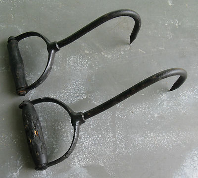 Lot of 2 antique old hay bale baling hooks primitive farm barn tool rustic decor