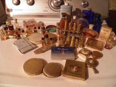 Title (ebay affiliate link): primitive antique mini perfumes, compacts, lipsticks and holder, etc..etc....