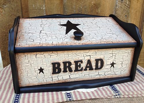 Title (ebay affiliate link): Primitive Bread Box Crackle Farmhouse Decor Country Kitchen
