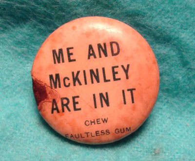 Title (ebay affiliate link): "Me and McKinley Are In It" Political Presidential Gum Pin Baldwin & Gleason