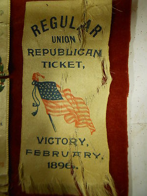 Title (ebay affiliate link): 1896 1900 REPUBLICAN PARTY POLITICAL RIBBONS VERY OLD FRAYED