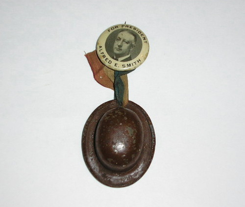 Title (ebay affiliate link): Rare 1928 Al Smith For President Campaign Button w/Metal Brown Derby