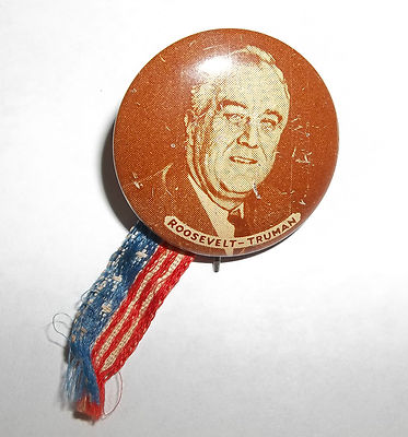 Title (ebay affiliate link): HTF 1944 Vtg 4th Presidential Campaign FDR Roosevelt & Truman Pinback Button