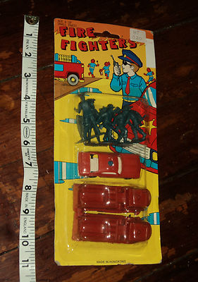Title (ebay affiliate link): vintage Fire Fighters set, firemen and firetrucks made in Hong Kong, in package