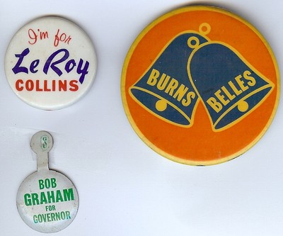 Title (ebay affiliate link): 2 Florida Vintage Governor Political Campaign Pinback Buttons & 1 Tab