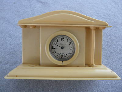 ANTIQUE CELLULOID MANTLE SHELF 8 DAY CLOCK PARTS