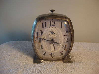 ANTIQUE ALARM CLOCK INGRAHAM PENGUIN BLACK CASE RARE