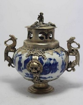 Title (ebay affiliate link): Chinese Tibet Silvered Painting Dragon Lion Porcelain Incense Burner