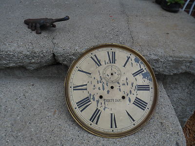 ANTIQUE BRASS WATERBURY CLOCK FACE LARGE 12 X 3/4" DIAMETER 30 DAY GOOD