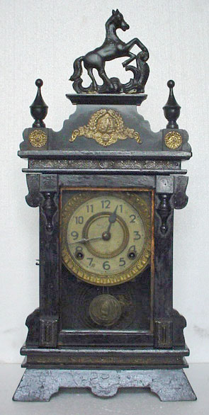 Title (ebay affiliate link): ANTIQUE HORSE FINIAL CREST BRASS DECO MANTLE CLOCK - NR
