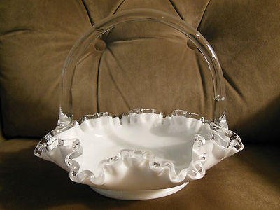 Title (ebay affiliate link): Fenton Milk Glass Silver Crest Basket,7 inches Tall,No chips/cracks