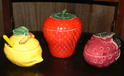 Vintage Hazel Atlas Milk Glass Strawberry Jam / Sugar Bowl, + Lemon & Another