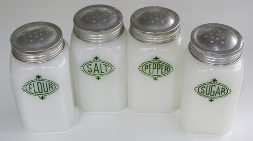 Title (ebay affiliate link): (4) Chef Boy-Ar-Dee Dinner Range Shakers-Salt/Pepper/Flour/Sugar-Milk Glass gg37