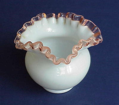 Title (ebay affiliate link): Fenton Art Glass ROSE CREST Bowl Pink Ruffled Edge White Milk Glass