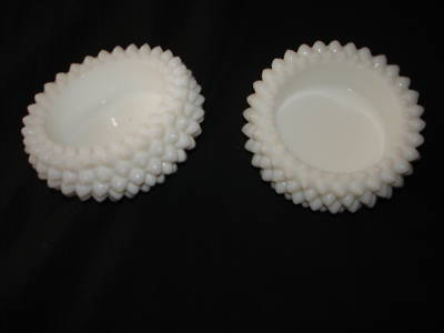 Fenton - Hobnail White Milk Glass -sharp points 2 piece