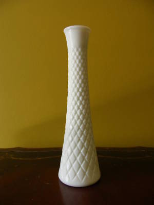 Vintage White Milk-Glass Diamond Bud Vase Mint