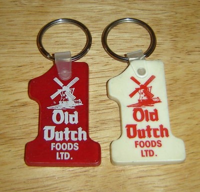 Title (ebay affiliate link): 2 VINTAGE RUBBER NUMBER No.1 SHAPED OLD DUTCH FOODS KEYCHAINS RED & WHITE