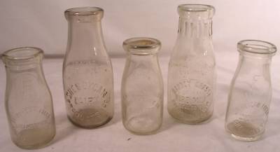 5 Vintage Glass Milk Bottles, Circa Early 1900s, WI