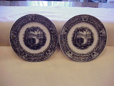 MULBERRY TRANSFERWARE WASHINGTON VASE 2 PLATES