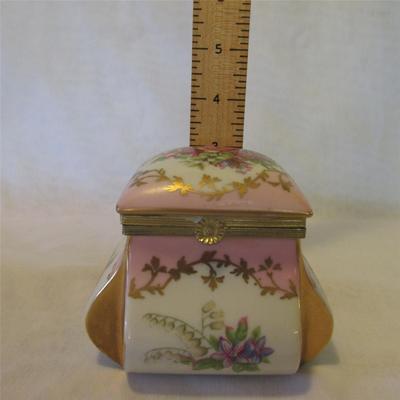 Title (ebay affiliate link): Antique Handpainted Gold and Pink Floral Porcelain Trinket Box with Hinged Lid