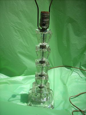 RARE Vintage Etched Cube Crystal Glass Table Lamp