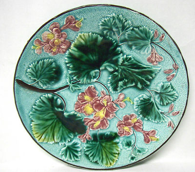 Antique MAJOLICA Plate U&C / S - UTZSCHNEIDER & CIE / SARREGUEMINES w/Geraniums
