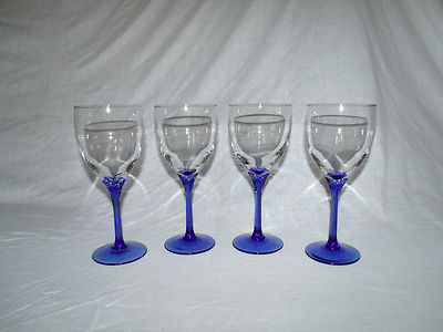 4 BEAUTIFUL VINTAGE COBALT BLUE STEMMED LENNOX CRYSTAL WINE GLASSES