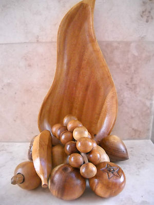 Title (ebay affiliate link): Hand Carved 11 Pieces~ Wooden Fruit and Tray, Vintage Monkey Pod Wood Retro