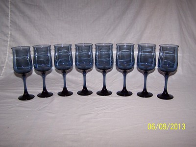 8 BEAUTIFUL VINTAGE COBALT BLUE HANDCRAFTED CRYSTAL WINE GLASSES