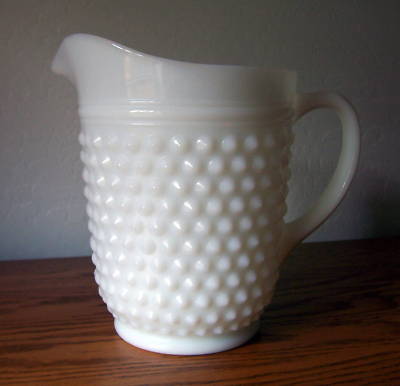 Vintage White Milk Glass Serving Pitcher Hobnail Design