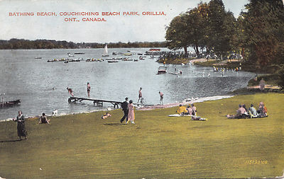 Title (ebay affiliate link): Bathing Beach Couchiching Beach Park ORILLIA Ontario Canada 1930-40s Postcard