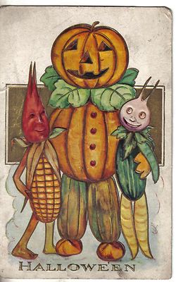 Title (ebay affiliate link): Fantasy Halloween Pumpkin & Veggie People Antique Postcard N178