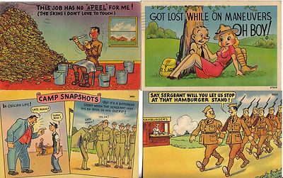 Title (ebay affiliate link): 12 Antique Linen Comic Humor Military Postcards N182