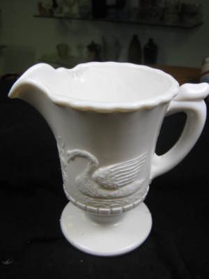 1870S EAPG SWAN MID GREENERY OPAQUE MILK WHITE CREAMER