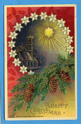 VINTAGE CHRISTMAS GOLD STAR HEYMANN EMBOSSED ANTIQUE POSTCARD