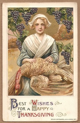 Title (ebay affiliate link): JOHN WINSCH 1911~Schmucker~Thanksgiving PILGRIM Turkey Grape Clusters Embossed