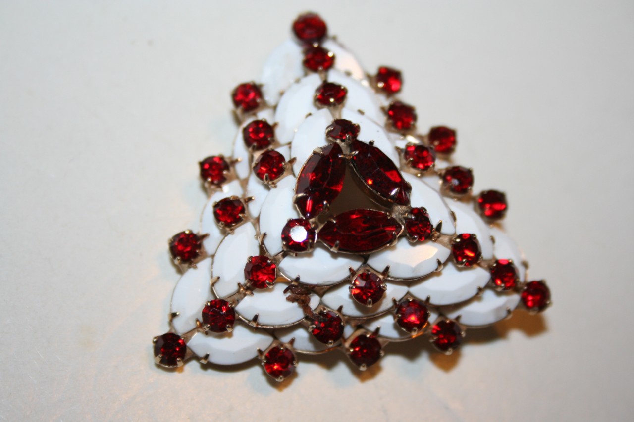 VINTAGE 4 TIER RHINESTONE & MILK GLASS BROOCH JULIANA