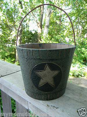 Primitive Farmhouse Painted Wood/Wooden STAR Bucket~Pale~Planter Rusty Handle