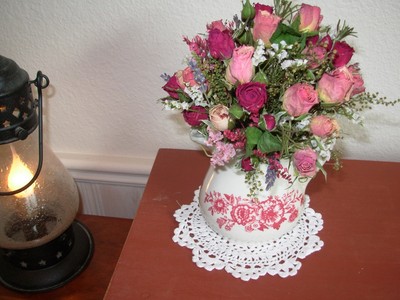 Title (ebay affiliate link): PRIMITIVE VINTAGE BONE CHINA CREAMER WITH ROSES & DOILY