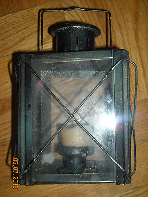 ANTIQUE BLACK METAL& GLASS CANDLE- LAMP 8" tall