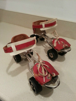 Title (ebay affiliate link): Vintage "Sport" Metal Roller Skates Leather Heels and Padded Straps