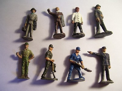 lead toy figures businessmen, field workers railroad some marked EIRE