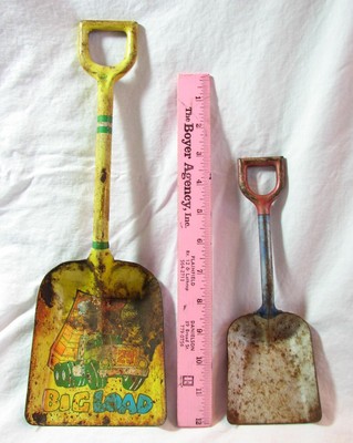 Title (ebay affiliate link): Vintage big Ohio Art and other tin sand, beach shovels, two shabby shovels