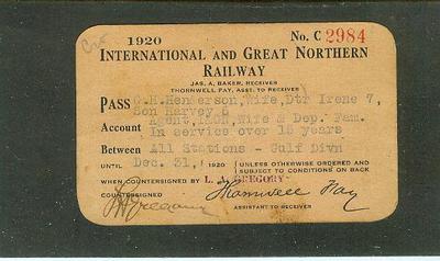 Title (ebay affiliate link): 1920 International & Great Northern Ry - Pass -C Series